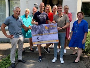 Vorig jaar is Pims tante op veel te jonge leeftijd overleden. Zijn oom (op de foto houdt hij de cheque vast) heeft aangegeven veel steun te ontvangen in het Toon Hermans Huis en uit dankbaarheid hiervoor heeft Pim onze Stichting uitgekozen voor zijn sponsorloop.